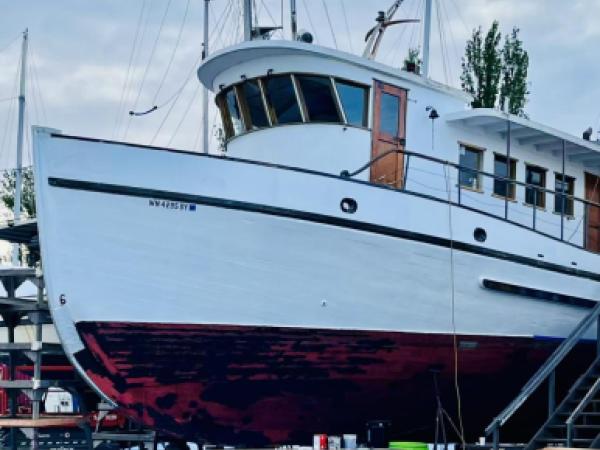 The keel of T-86 was laid October 1942. She was designated for the Dept. of Justice, but was commissioned an Army Vessel for WWII. She went to the DOJ in 1958 after Korean War service. She briefly worked at Alcatraz before arriving US Penitentiary McNeil Island in 1960. She had her official renaming ceremony in 1961 with the Mayor of Steilacoom aboard. Steilacoom has numerous rescue citations and was the preferred storm boat of the McNeil Captains. I first rode her in 1965 through the late 1970s. She transferred to WA state service in 1981 and became their flagship after a remodel that rounded the face of her pilot house, leveled her tri-top roof, and added an overhanging roof as on most yachts. Her image is on many WA Dept. of Corrections publications, as well as on numerous commemorative items, including frames, mugs, belt buckles and two different era issues of challenge coins. She ended state service in 2005 and went to her first private owner. three owners later with Jefferson Giffords, Cap Ben Swanson of the Classic Yacht Discovery told our Historical Society about her, and we purchased her in Nov 2018 and have been doing ongoing restoration ever since.