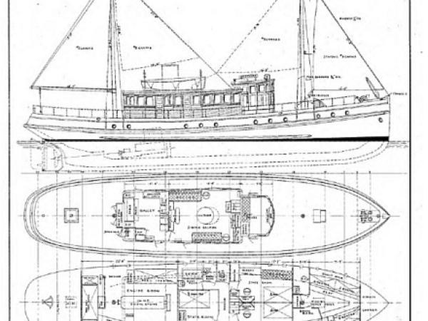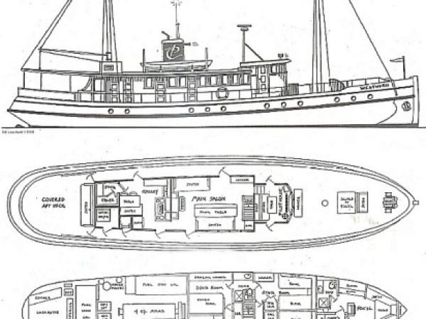 M.V. Westward is a classic wooden motor vessel constructed in 1924 in Dockton, Washington. She is 86 feet long, and her beam measures 18 feet 8 inches across. Her draft is 9 feet 5 inches and displacement is 137.5 tons. She is powered by her original four cylinder Atlas Imperial diesel engine which provides 110 h.p. (horsepower) at 325 r.p.m. (revolutions per minute) and gives her a cruising speed of eight knots at 290 r.p.m.. Westward has a fuel capacity of 2,200 gallons for a cruising range of 2,500 nautical miles, and she carries 1,000 gallons of fresh water with a reverse osmosis water maker.